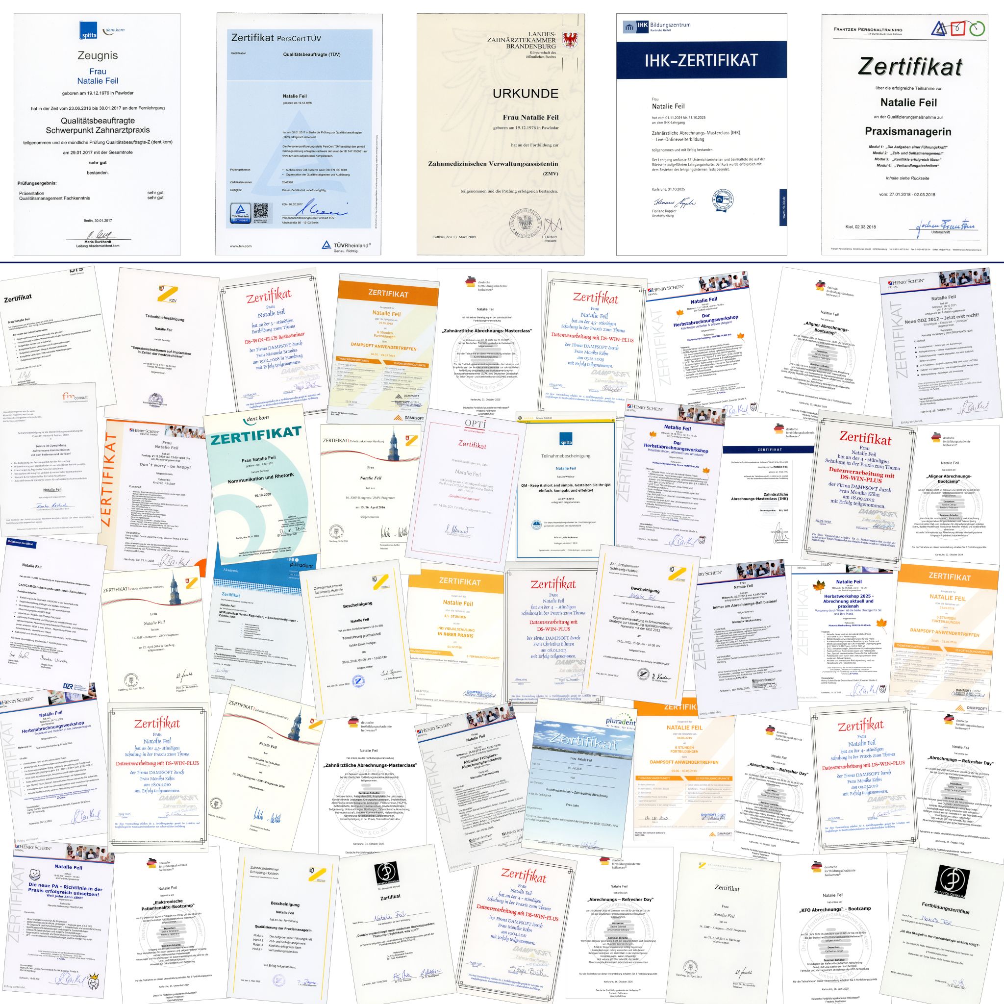 - 2017: Fortbildung zur Qualitätsbeauftragten mit Schwerpunkt Zahnarztpraxis, Spitta Akademie/dent.kom